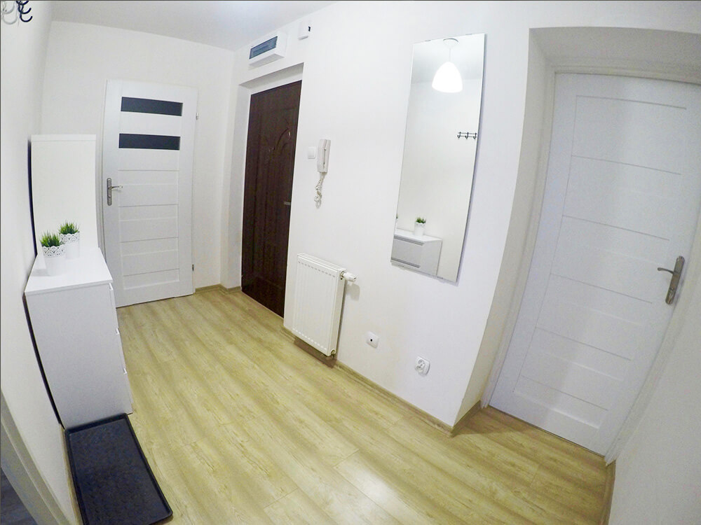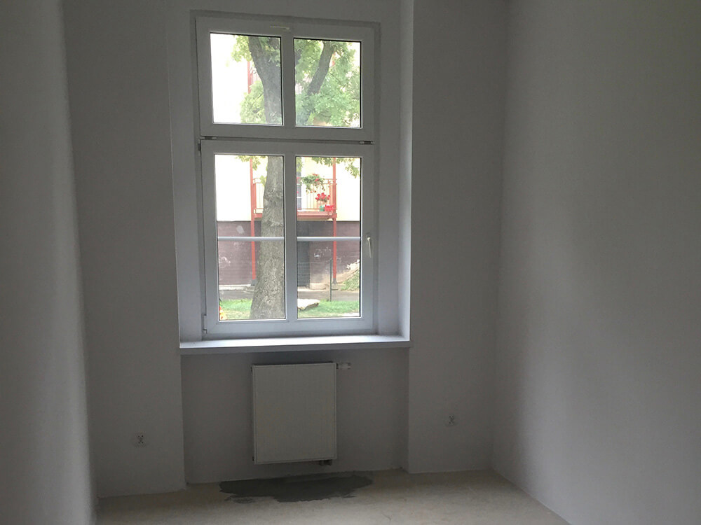 Mieszkanie o powierzchni 100 m2 zakupione na rynku pierwotnym w stanie deweloperskim, zlokalizowane jest w sąsiedztwie Kolegium Karkonoskiego i składa się z dwóch kondygnacji, wysoki parter i sutenery. Lokal posiada 4 pokoje, obszerną kuchnię, hol, łazienkę, a na poziomie -1 dodatkowy salon, który został przez nas pozostawiony do własnej aranżacji przez lokatorów. Mieszkanie było już częściowo wykończone i nie musieliśmy zmagać się z instalacją elektryczną, czy wodno-kanalizacyjną oraz ogrzewaniem. Ten etap prac wykonał już deweloper, więc my skupiliśmy się na wykończeniu mieszkania, położone zostały jednolite podłogi, zaaranżowaliśmy łazienkę, zamontowaliśmy stolarkę drzwiową i wyposażyliśmy nieruchomość w meble oraz niezbędne urządzenia AGD.