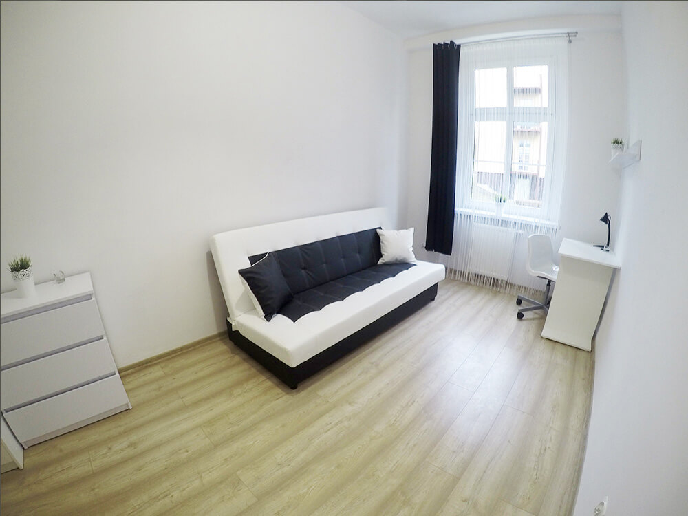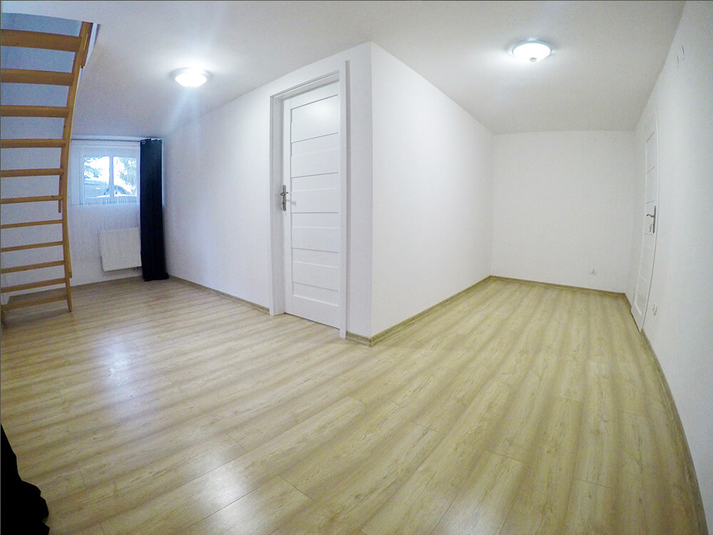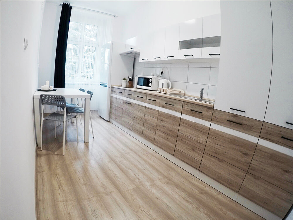 Efektem prac jest komfortowe i przytulne mieszkanie, które postanowiliśmy wynająć na pokoje. Na każdej z kondygnacji znajdują się dwa pokoje, które zapewniają lokatorom prywatność, a wspólna kuchnia i kącik jadalniany zachęca do porannych rozmów przy kubku gorącej kawy. Całość utrzymana w kolorach bieli, czerni i odcieniach szarości nadaje mieszkaniu nowoczesny wygląd, który przypadł do gustu naszym lokatorom.