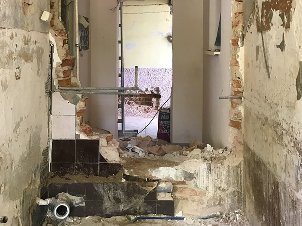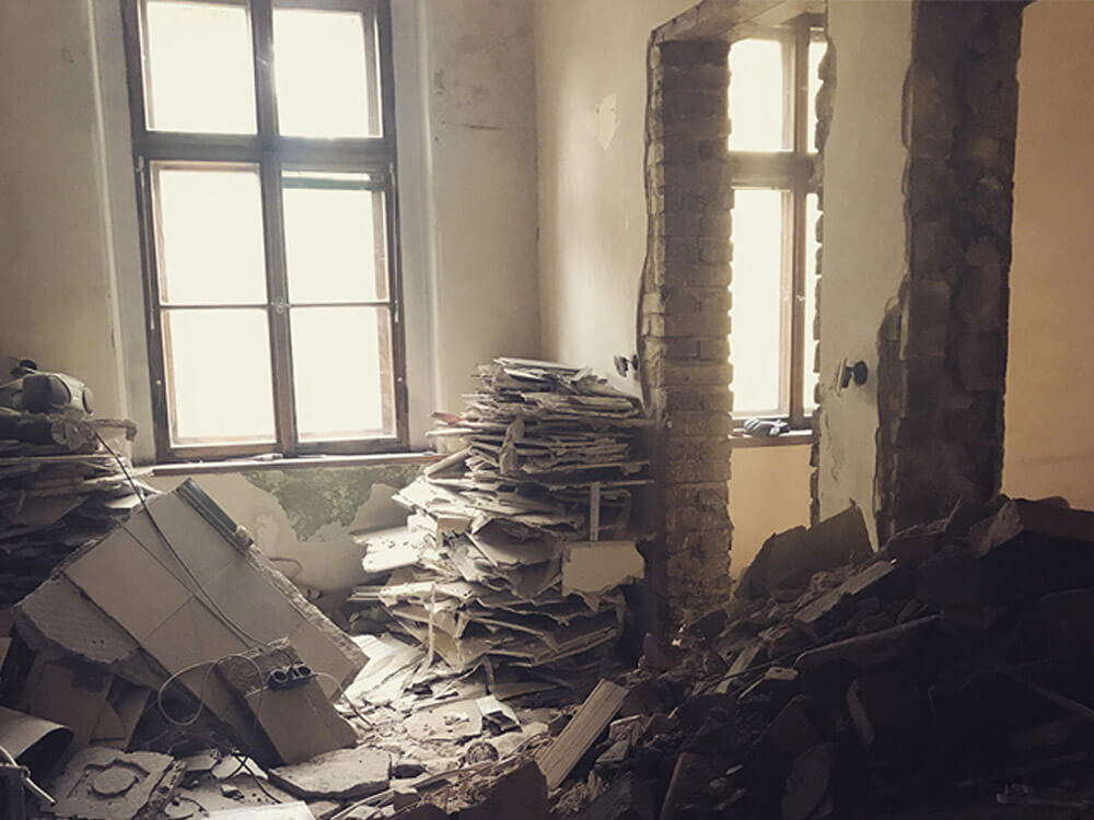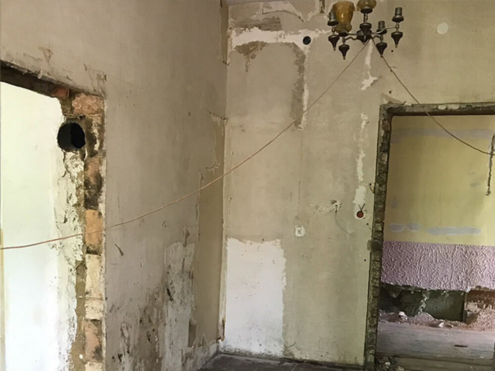 Mieszkanie o powierzchni użytkowej 100 m2, zostało zakupione w przetargu nieograniczonym od Urzędu Miasta. Przez lata było wykorzystywane jako mieszkanie socjalne, które zostało zdewastowane i wyeksploatowane. Nasz remont był gruntowny, podczas prac rozebraliśmy dwa powojenne piece kaflowe i wykonaliśmy od podstaw nowe ogrzewanie gazowe. Wymieniliśmy instalacje wodno-kanalizacyjną oraz elektryczną, wyburzyliśmy ściany i zmodernizowaliśmy układ całego mieszkania. Podczas prac remontowych zutylizowaliśmy łącznie 5 ton gruzu, zamontowaliśmy nową stolarkę w oknach i drzwiach, położyliśmy jednolitą podłogę i stworzyliśmy od podstaw nową łazienkę i odrębne wc.