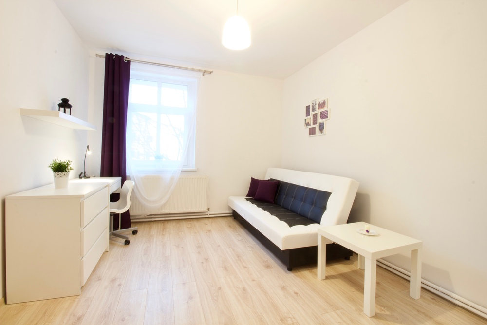 Efektem prac jest przestronne mieszkanie z wyodrębnioną częścią prywatną w pokojach oraz częścią wspólną, w skład której wchodzi kuchnia oraz dla lepszego komfortu użytkowania dwie odrębne łazienki. Całość utrzymana w kolorach bieli, która została przełamana ciepłym odcieniem drewna.