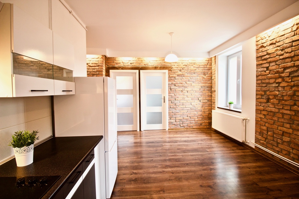 Efektem końcowym naszych prac jest urokliwe mieszkanie, w którym cegła została połączona z ponadczasową bielą i ciemnym drewnem, a belki stropowe nadały ciepły klimat wnętrzom.